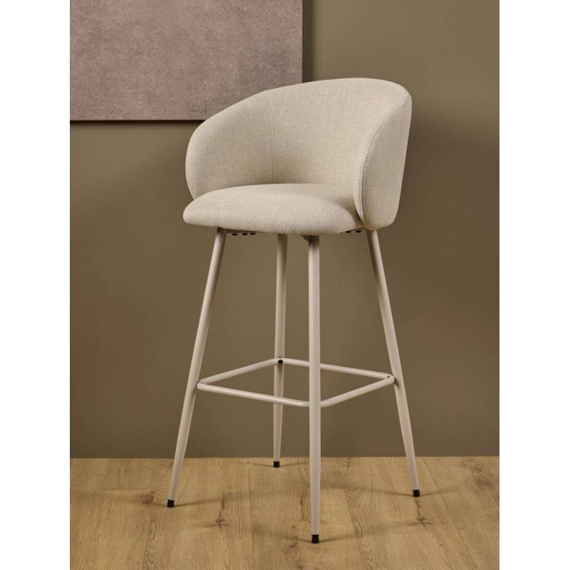 Ši baro kėdė išsiskiria švelniomis, organiškomis formomis, kurios suteikia baldui lengvumo ir subtilios elegancijos. Beige spalvos audinys su dviejų tonų efektu kuria jaukų ir estetišką vaizdą, lengvai derantį įvairiuose interjeruose.