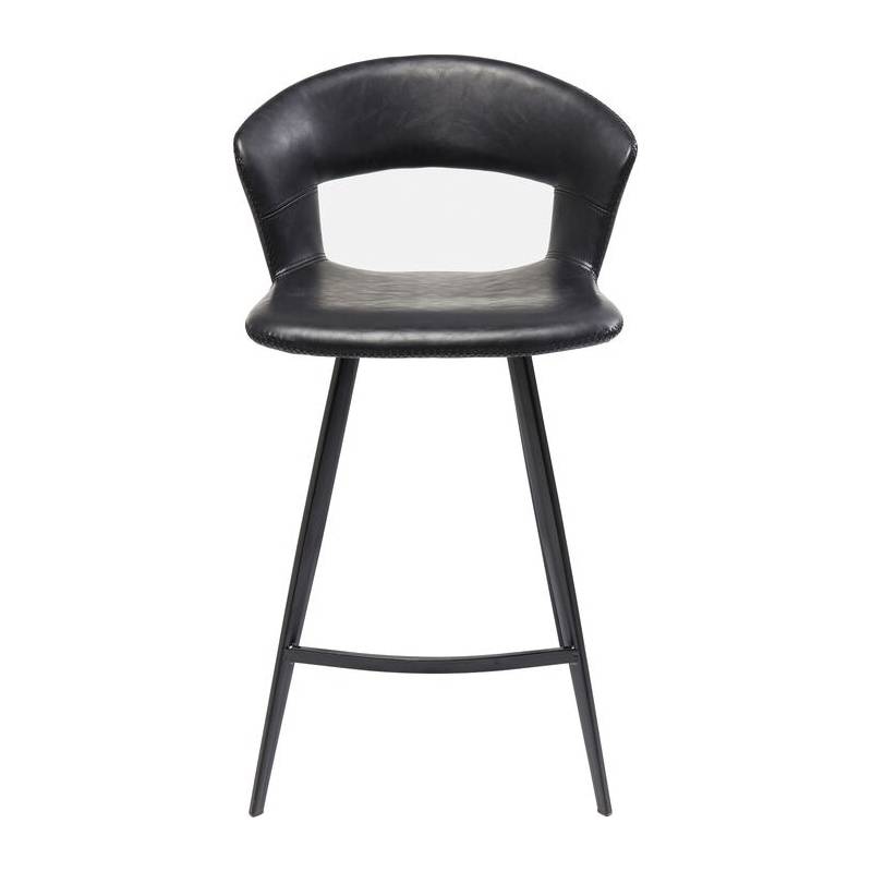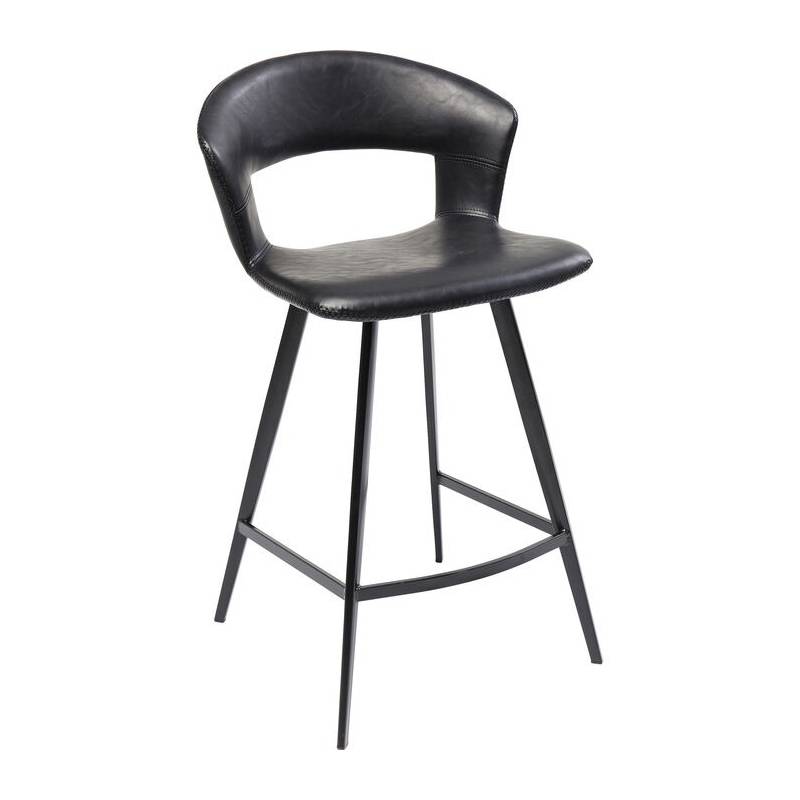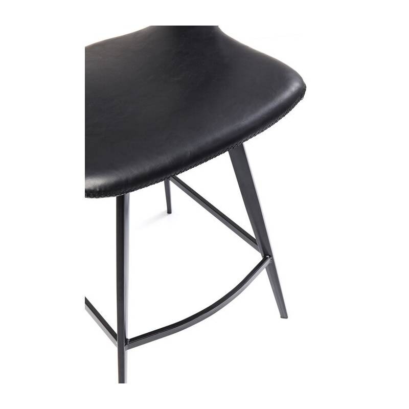Stilingas juodas baro stalas su odos imitacijos apmušalu ir lenktomis formomis – elegancija, komfortas ir universalumas viename.