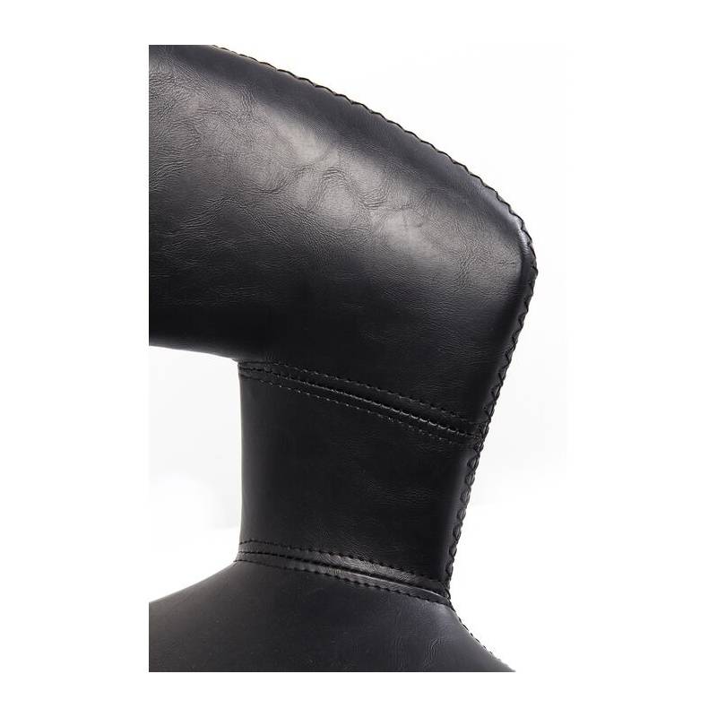 Minkštas sėdynės ir atlošo apmušalas su odos imitacijos danga suteikia kėdei prabangos įspūdį, o kartu yra itin lengvai prižiūrimas. Dekoratyvinės kryžminės siūlės aplink sėdimąją dalį suteikia kėdei išskirtinumo ir meistriškumo pojūtį.
