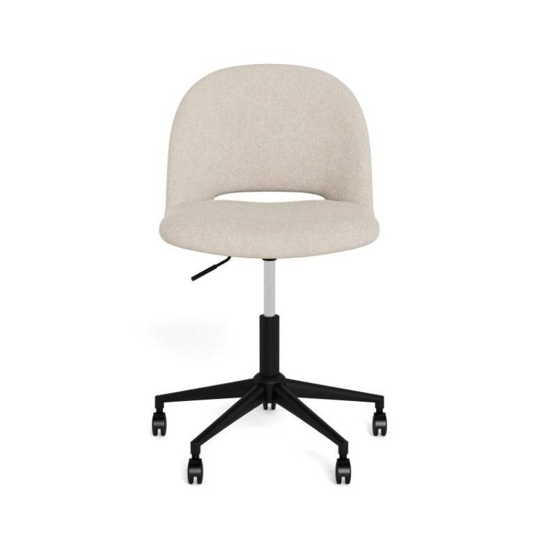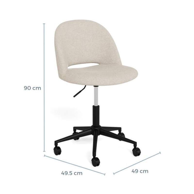 Ši darbo kėdė išsiskiria elegantišku dizainu ir apvaliomis formomis, kurios suteikia interjerui švelnumo ir modernumo. Beige spalvos audinys su šenilės tekstūra yra malonus liesti ir kuria jaukią darbo aplinką.