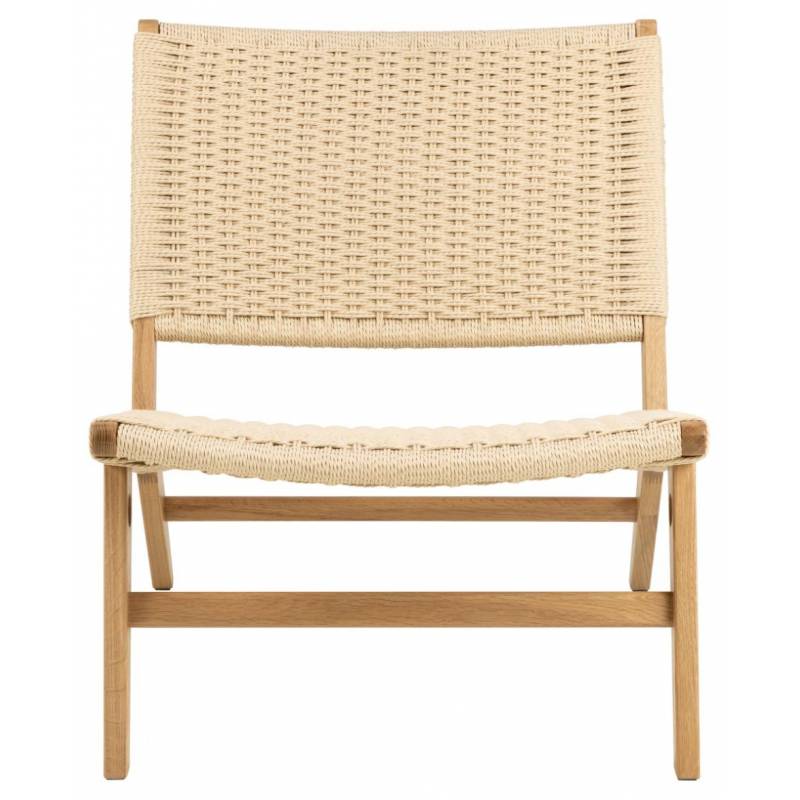 Minimalistinio dizaino poilsio kėdė su pintu sėdėjimo paviršiumi ir alyvuoto ąžuolo rėmu – natūralumo ir skandinaviškos estetikos derinys.