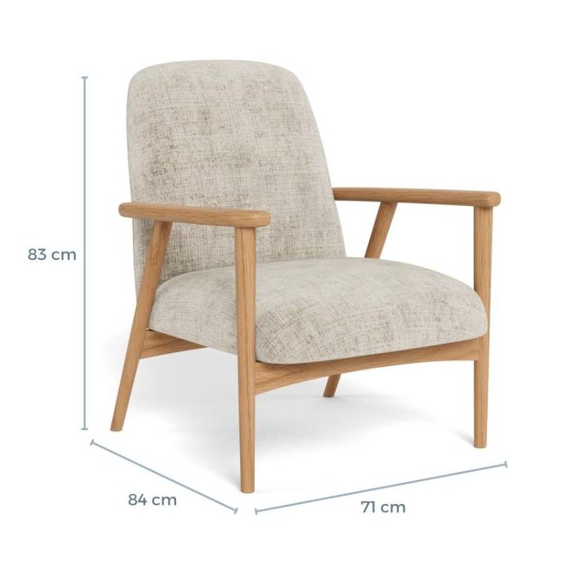 Šis fotelis išsiskiria organiškomis, švelniai lenktomis formomis, kurios apgaubia sėdintįjį ir suteikia išskirtinį komforto pojūtį. Beige spalvos tekstūrinis audinys kuria jaukią ir šiltą atmosferą, o modernus dizainas lengvai įsilieja į įvairius interjerus.