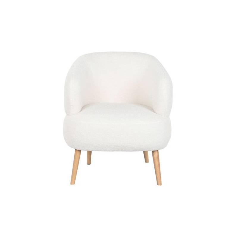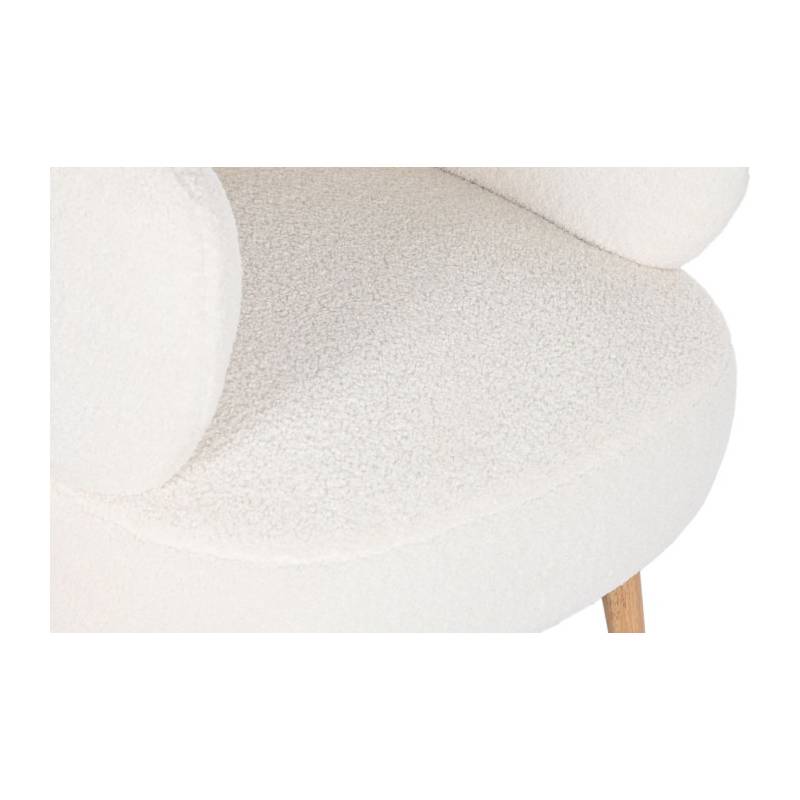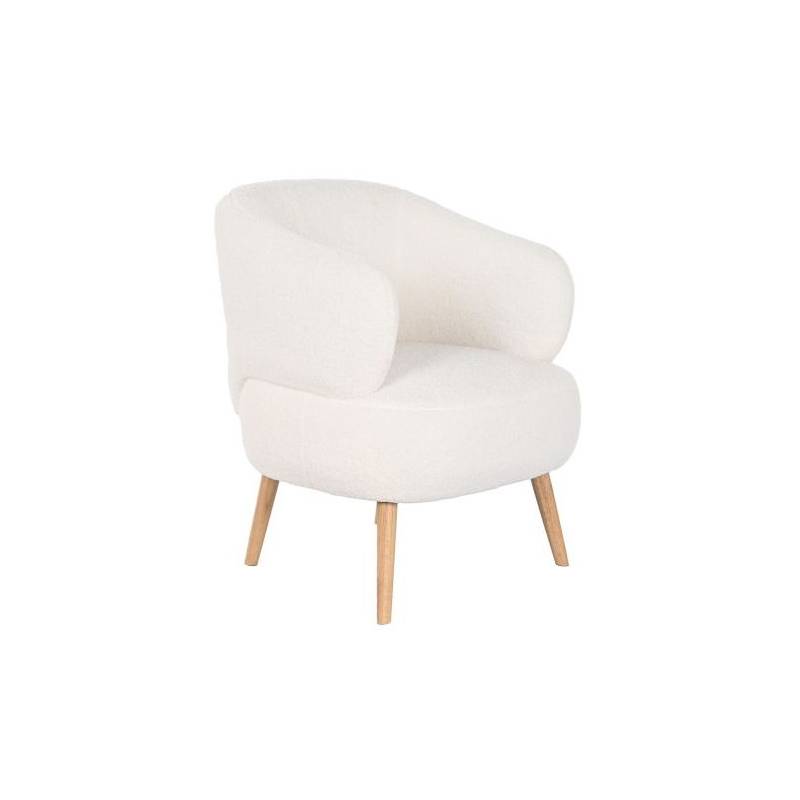 BORREGUITO fotelis– jaukumo ir natūralių tonų harmonija, kurioje balto poliesterio apmušalas dera su šiltais medžio akcentais – suteikia jūsų erdvei modernumo dvelksmo.