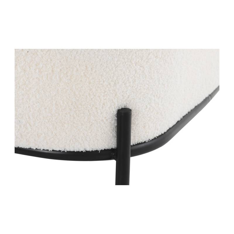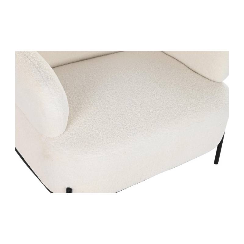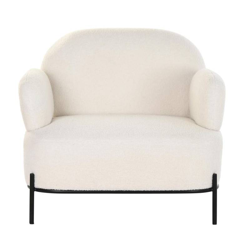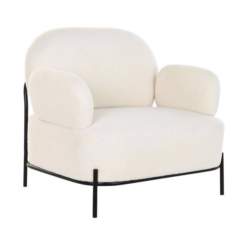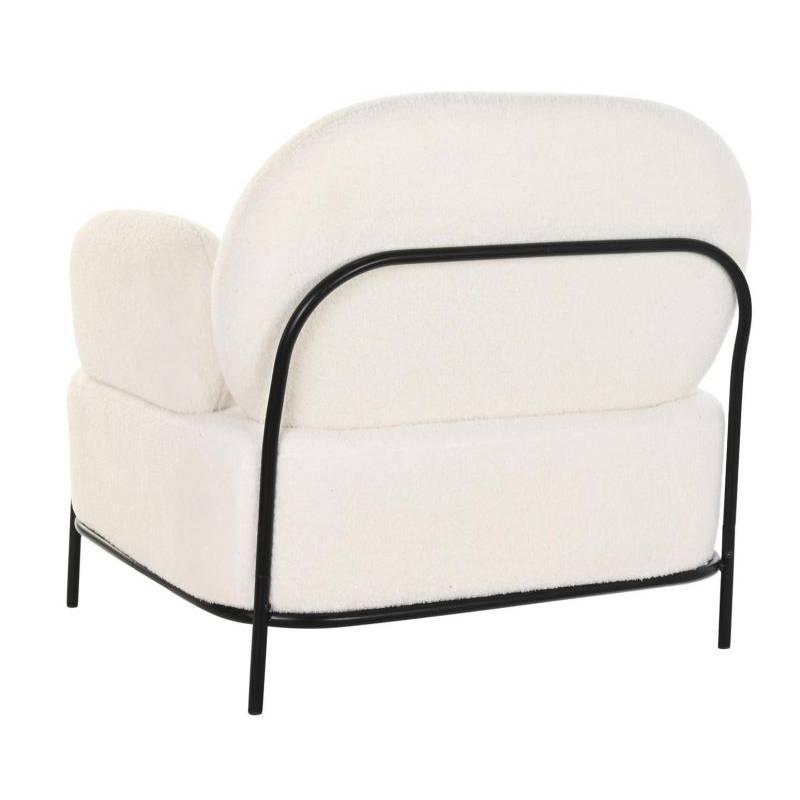 Foteliukas su porankiais, konstrukcija metalinė, dažyta milteliniu būdu juodai. Sėdimoji dalis vilkta baltos spalvos teddy audiniu.