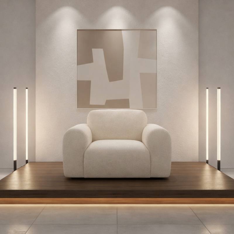 Dideli 110 × 105 cm matmenys užtikrina erdvę atsipalaiduoti, o minkšta sėdimoji dalis sukuria „debesies“ efektą – fotelis švelniai apgaubia kūną ir suteikia maksimalų komfortą. CLOUD puikiai tinka moderniems, minimalistiniams ar jaukiems interjerams, kur svarbus ne tik dizainas, bet ir emocinis komfortas.