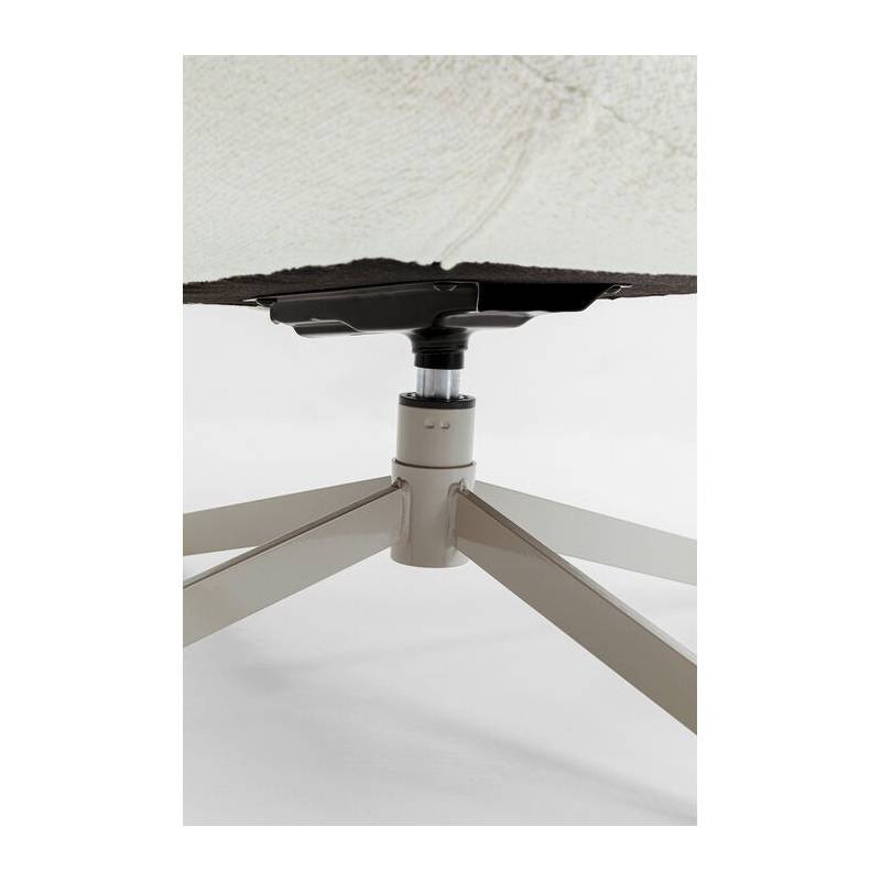 Minkšta sėdimoji dalis, platus atlošas ir patogūs porankiai užtikrina maksimalų komfortą net ir ilgiau sėdint. Fotelio pagrindas pagamintas iš tvirto plieno modernios „greige“ (pilkai smėlinės) spalvos – jis ne tik stabilus, bet ir suteikia baldų dizainui šiuolaikinio išskirtinumo.