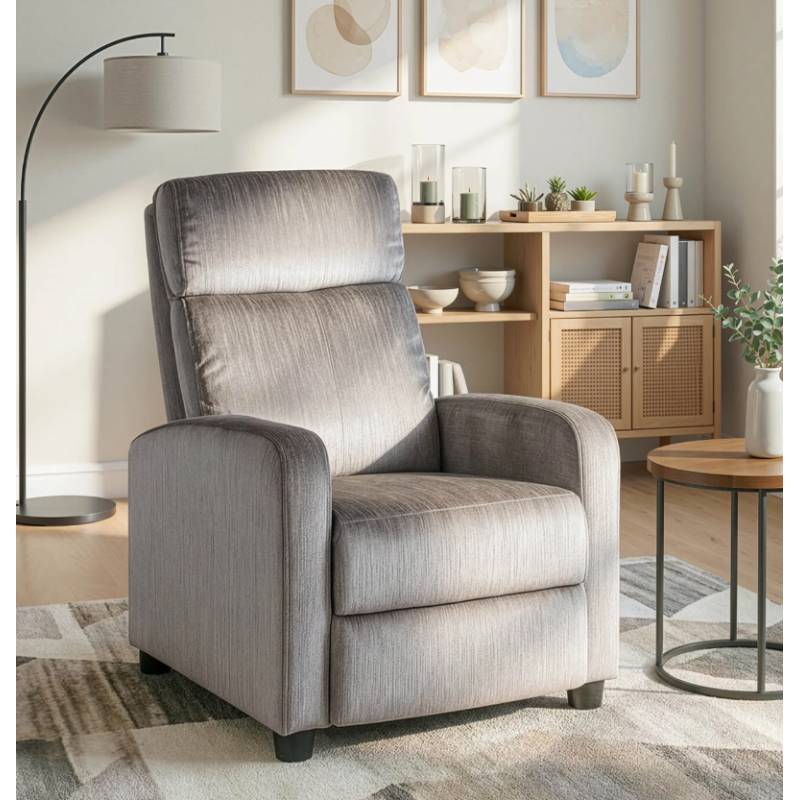 NAGI fotelis sukurtas patogiam poilsiui – minkštas veliūro audinys ir ergonomiška forma suteikia jaukumo bei komforto kasdien. Pilka spalva lengvai dera įvairiuose interjeruose, o porankiai ir integruotas pakojis leidžia atsipalaiduoti maksimaliai.