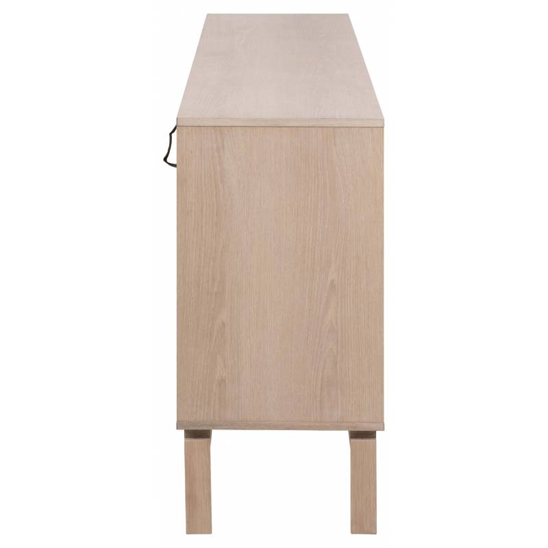 Keturių durelių konstrukcija su reguliuojamomis lentynomis užtikrina patogų daiktų laikymą, o push to open sistema suteikia švarų ir vientisą dizainą be rankenėlių. Tai funkcionalus ir estetiškas pasirinkimas svetainei ar valgomojo erdvei.