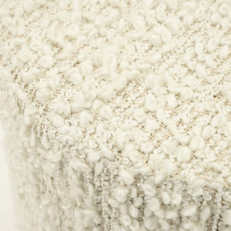 Pufas Vista – kreminės spalvos, su minkštu poliesterio ir medvilnės audiniu. Paprastas, stilingas ir funkcionalus baldas.