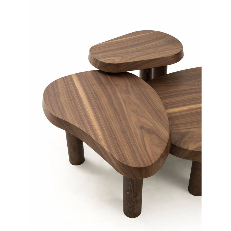 Natūralaus dizaino šoninis staliukas iš amerikietiško riešutmedžio, suteikiantis interjerui šilumos, solidumo ir išskirtinės elegancijos.