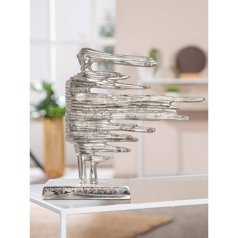 VERWEHUNG dekoracija išsiskiria savo dinamiška forma ir subtiliu dizainu, kuris kuria lengvumo bei judesio įspūdį. Sidabrinė spalva suteikia rafinuotumo ir šviesos žaismą, todėl ši dekoracija tampa puikiu akcentu tiek moderniuose, tiek industrinio stiliaus interjeruose.