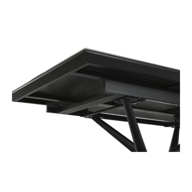 Pradinė stalo ilgis – 160 cm, tačiau išskleidus jis pasiekia 200 cm, tad lengvai sutalpinsite daugiau svečių be papildomų pastangų. Juodos metalinės kojos suteikia stabilumo ir išraiškingo modernaus charakterio. EMI dera prie industrinio, modernaus ar minimalistinio interjero, o dėl neutralių spalvų jį paprasta derinti su įvairiomis valgomojo kėdėmis.
