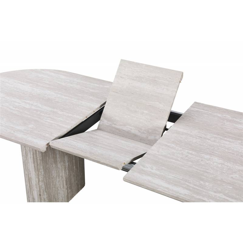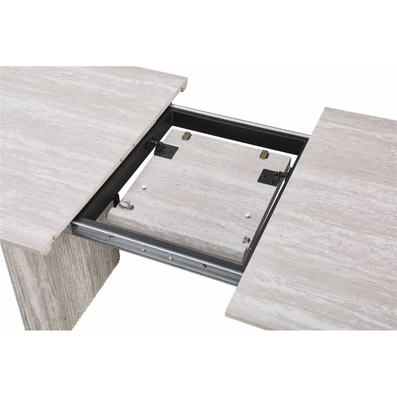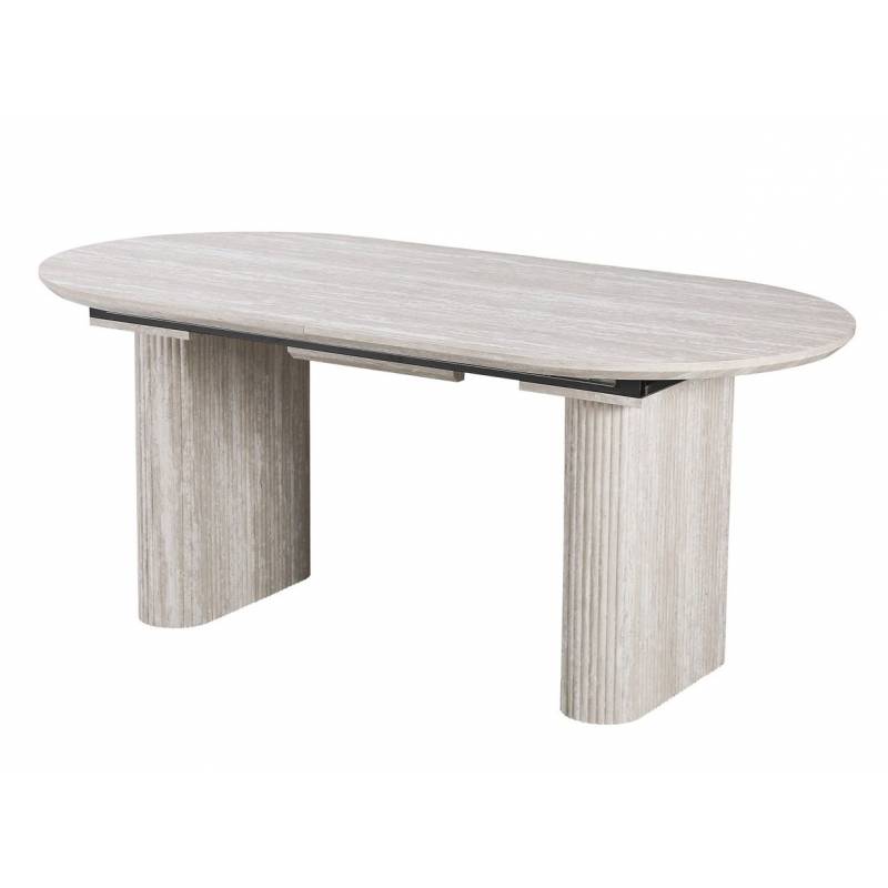 VALENTO – modernus išskleidžiamas valgomojo stalas, sukurtas patogiam kasdieniam naudojimui ir jaukiems susibūrimams. Uždarytas stalas yra 180 cm ilgio, o prireikus lengvai prailginamas iki 220 cm, todėl puikiai tinka tiek šeimos vakarienėms, tiek didesniems susitikimams. Subtilus dizainas leidžia jį priderinti įvairiuose interjeruose.