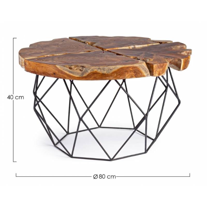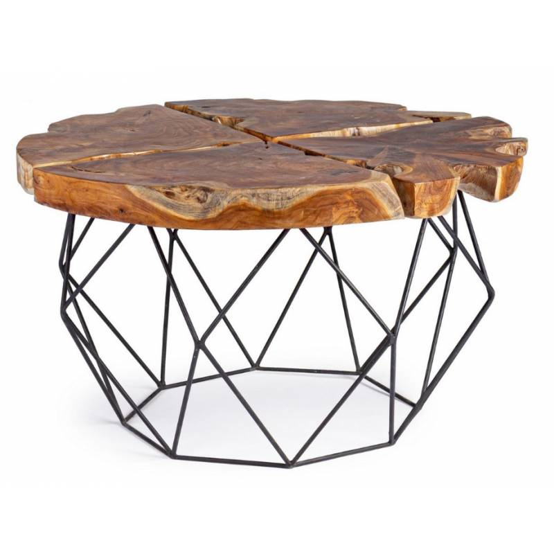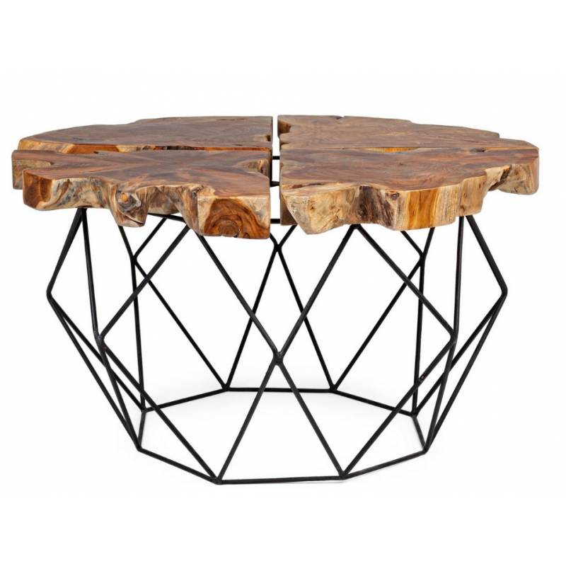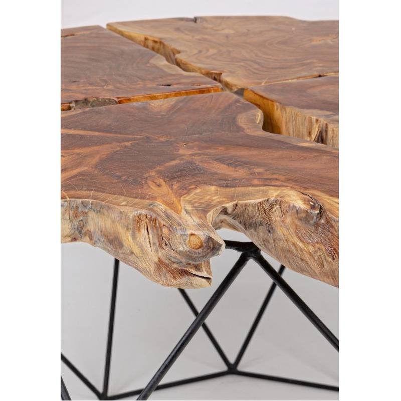 Iš natūralaus tikmedžio šaknų formuotas kavos staliukas su tvirta plienine baze, išsiskiriantis unikaliu dizainu ir organiška išvaizda.