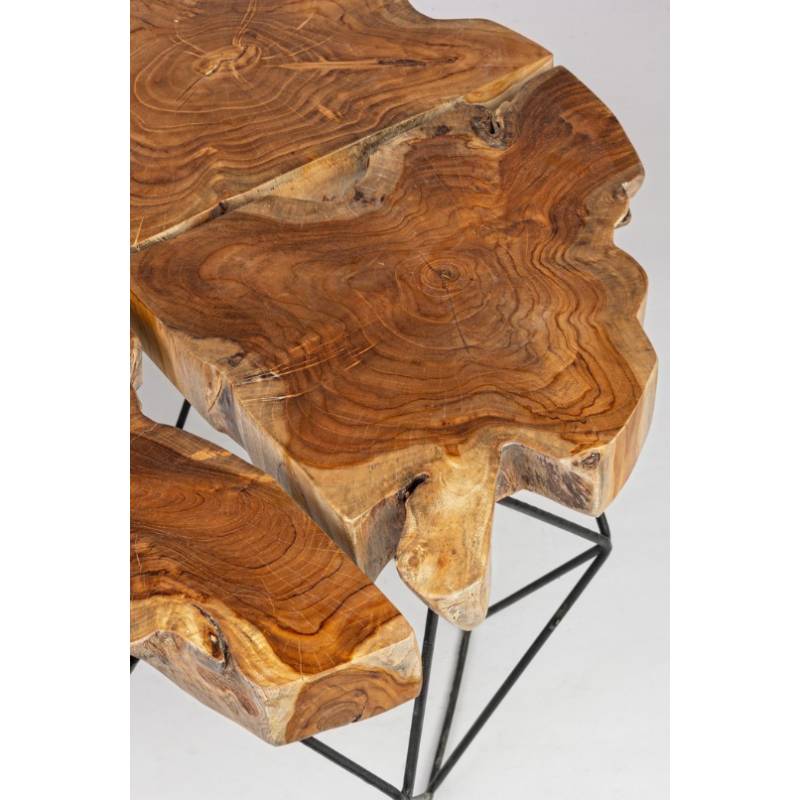 ADANYA kavos staliukas pagamintas iš tikmedžio šaknų, kurių natūrali, organiška forma yra išsaugota taip, kaip ją sukūrė gamta. Kiekvieno gaminio šakų linijos, raštai ir net matmenys gali skirtis, todėl kiekvienas staliukas yra unikalus ir vienetinis. Natūralus paviršiaus padengimas pabrėžia tikmedžio struktūrą bei suteikia šilto, autentiško charakterio.