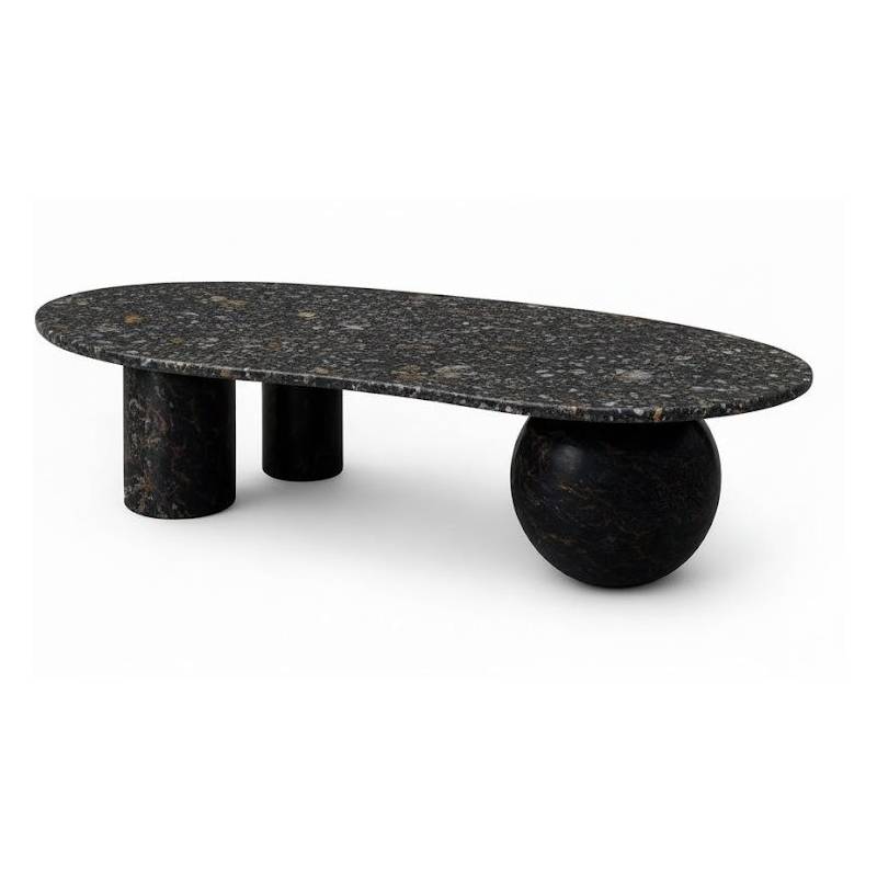 Išskirtinio dizaino kavos staliukas AQUA iš natūralaus juodo marmuro – elegancija ir natūralumas jūsų interjere.