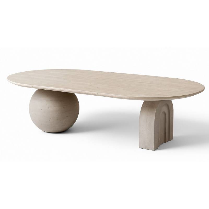 CALIPSO – tai nuostabaus dizaino kavos staliukas, kuris peržengia įprasto kavos staliuko ribas. Sukurtas iš natūralaus travertino akmens, šis baldas išsiskiria ne tik išskirtine medžiaga, bet ir skulptūrišku pagrindo dizainu. Viena koja – masyvus rutulys, kita – arkinės formos kolona, sukurianti dinamišką, bet stabilią struktūrą. Ovalus stalviršis užtikrina funkcionalumą ir suteikia baldui minkštumo pojūtį. Dėl savo išraiškingos išvaizdos CALIPSO puikiai tinka moderniam, minimalistiniam interjerui.