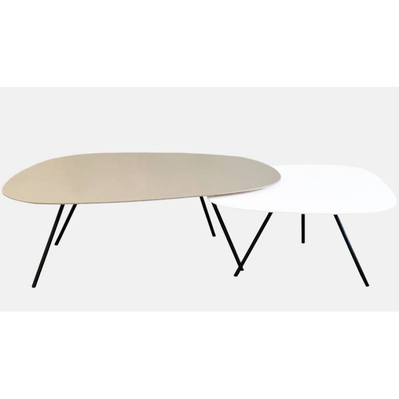 Beige spalvos kavos staliukas su juodomis metalinėmis kojomis. Staliukas gali būti 40, 43 ir 46 cm aukščio. Galima derinti su kitų formų CLOUD staliukais. Visiems baldams galima pritaikyti skirtingus stalviršius ir aukštį. Unikali galimybė susikurti savo staliukų rinkinį. Galite rinktis staliukus iš buko, ąžuolo, riešutmedžio arba įvairių spalvų MDF.