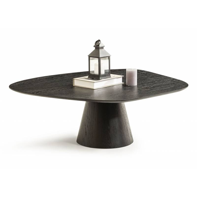 DELTA kavos staliukas išsiskiria aiškiomis linijomis ir kontrastinga juodo ąžuolo estetika. Natūrali medžio tekstūra subtiliai atsiskleidžia tamsiame paviršiuje, suteikdama baldui gylio ir prabangos pojūtį.