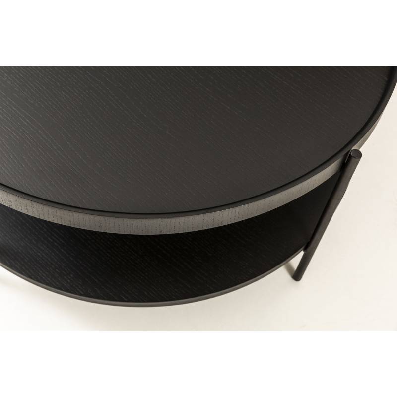 Galimybė rinktis ąžuolo, riešuto arba visiškai juodą apdailą leidžia lengvai priderinti staliuką prie skirtingų interjero sprendimų. Tai funkcionalus ir vizualiai lengvas baldas šiuolaikinei svetainei.