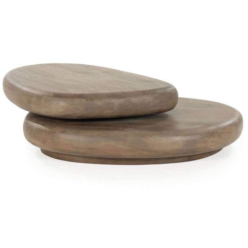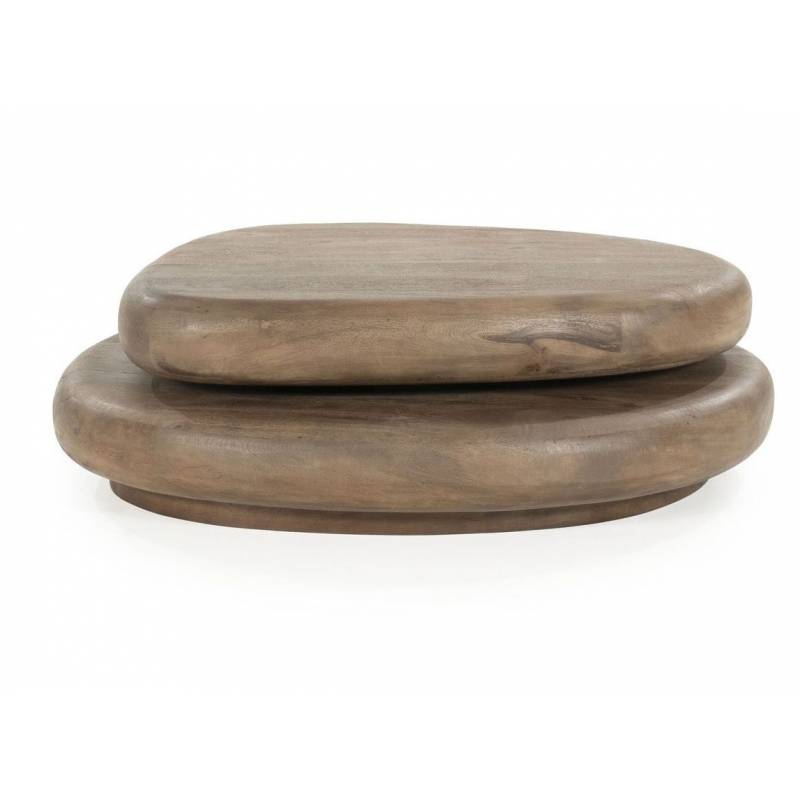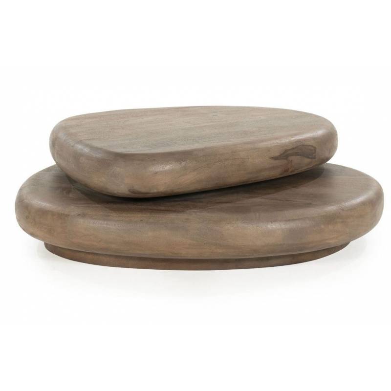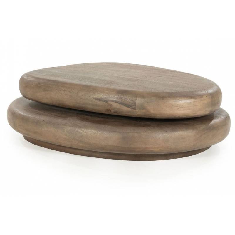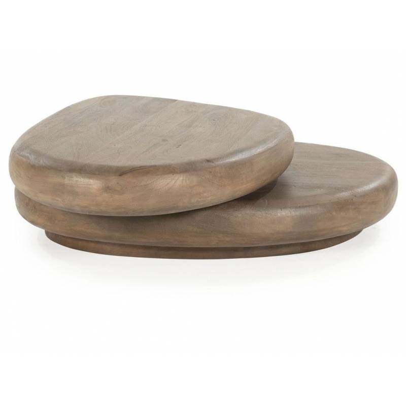Natūralios mango medienos kavos staliukas – elegantiškas akcentas svetainei, išsiskiriantis tekstūra ir tvirta konstrukcija.