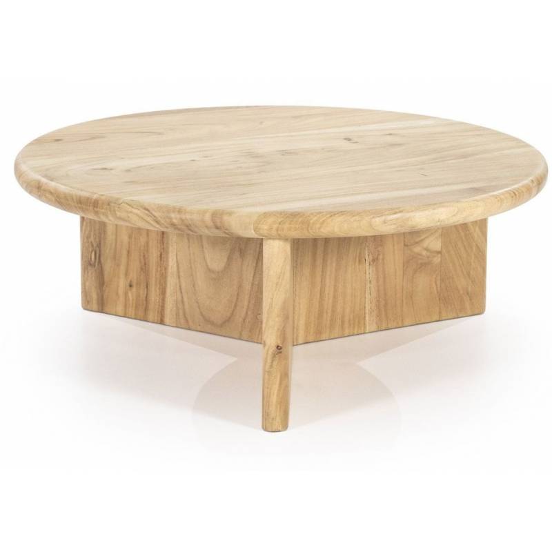 Stabilus centrinis stovas ir storas apvalus stalviršis kartu su natūralia šviesiai rudos spalvos palete leidžia staliukui puikiai derėti tiek moderniame, tiek skandinaviškame ar šiuolaikiškame interjere. Skirtingos medžio spalvos ir švelnios apvalios linijos pridėtinai pabrėžia jaukumą ir funkcionalumą objekto dizaine.