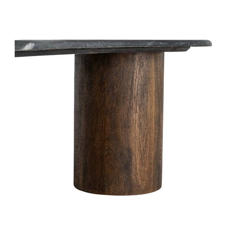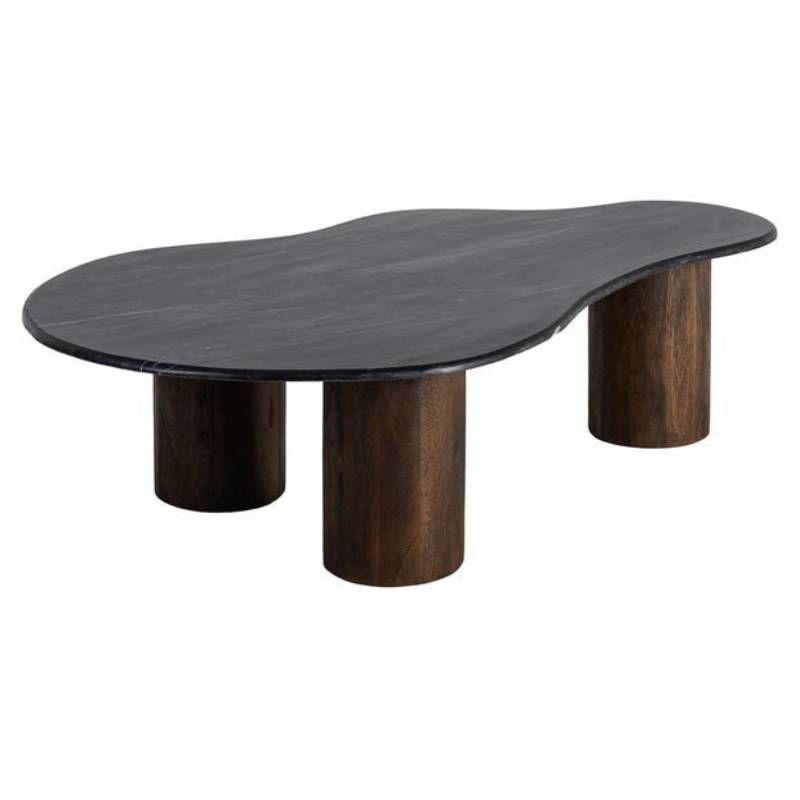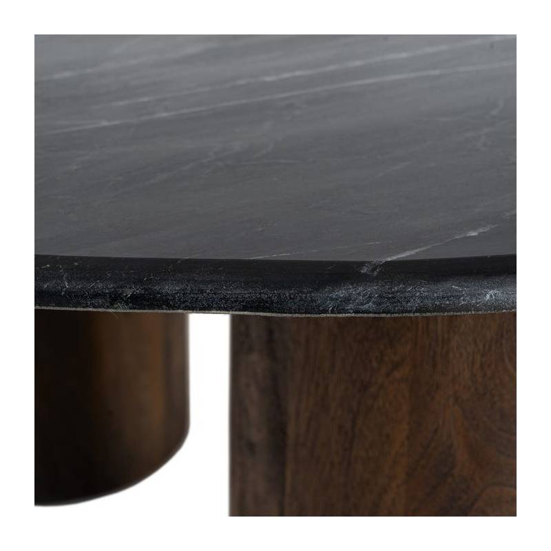 MARBENO – tai išskirtinio dizaino kavos staliukas, kuriame dera natūralaus marmuro prabanga ir mango medienos šiluma. 2 cm storio marmuro stalviršis pasižymi išskirtine faktūra ir natūraliais spalvų raštais, todėl kiekvienas staliukas yra unikalus. Juodos ir rudos spalvų paletė suteikia baldui modernų, sodrų ir elegantišką charakterį.