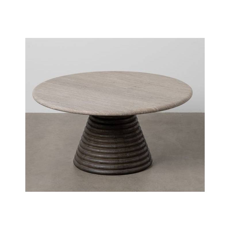 MARMO – elegantiškas kavos staliukas, kuriame skoningai susilieja natūralus marmuras ir šiltas mango medžio stabilumas. Apvali forma (90 × 90 × 43 cm) suteikia daug funkcionalios erdvės, tuo pačiu išlaikant minimalistinį ir rafinuotą vaizdą. Marmuro paviršius, kiekvienam egzemplioriui unikalus savo raštu ir atspalviais, sukuria prabangos pojūtį. Tikras interjero akcentas, tinkantis tiek moderniam, tiek klasikinio stiliaus interjerui, kur vertinama estetika ir kokybiškas apdirbimas.