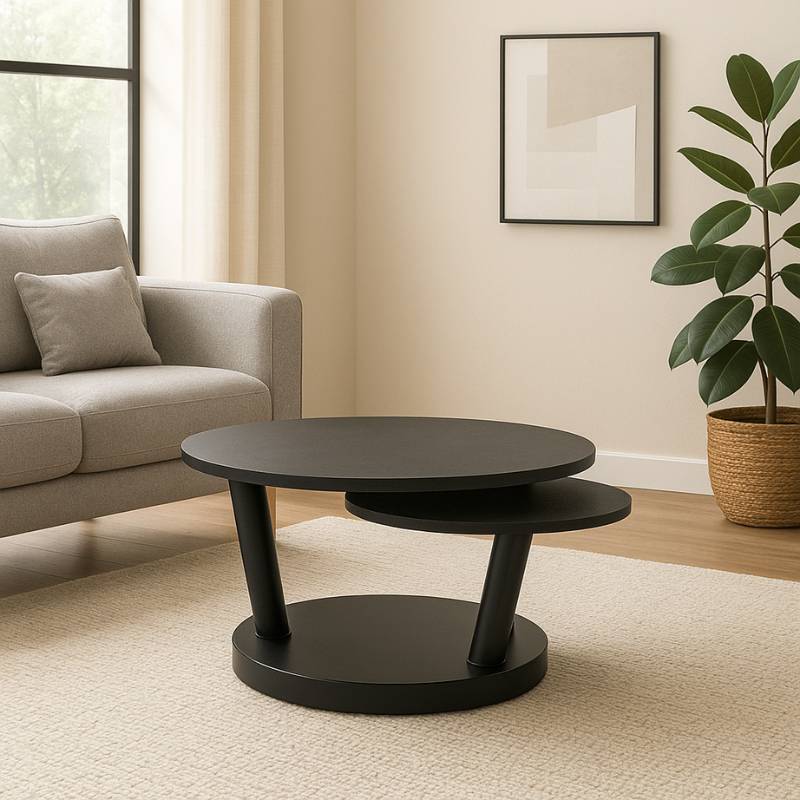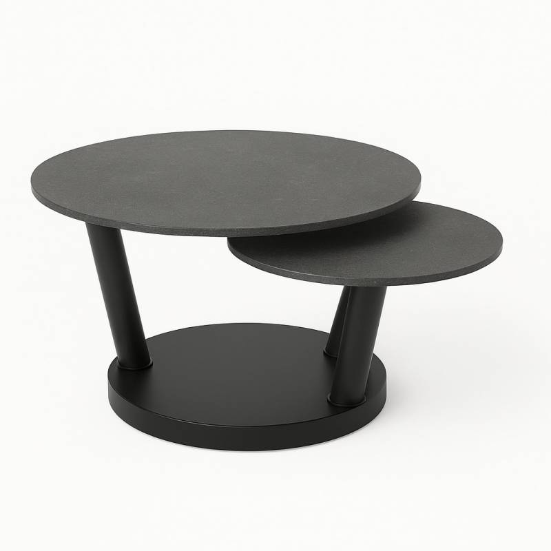 Kavos staliukas OSTEO – tai dinamiškas ir stilingas interjero baldas, sukurtas ne tik funkcionalumui, bet ir vizualiniam efektui. Staliukas susideda iš trijų apvalių paviršių, pritvirtintų prie centrinės bazės skirtingame aukštyje – jie gali būti pasukami, išskleidžiami ir kompaktiškai uždengiami vienas kitą, priklausomai nuo poreikio.