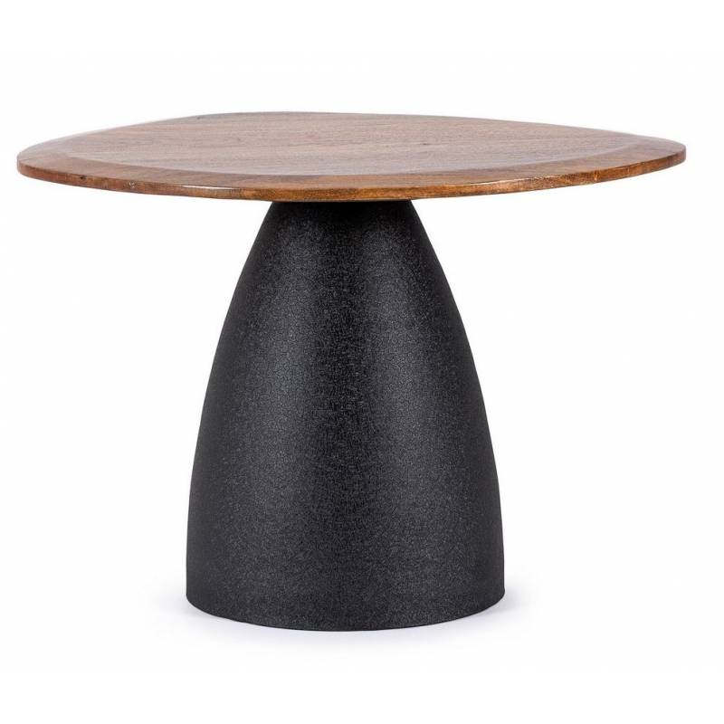Kavos staliukas STANLEY 60×58×45 cm su mango medžio stalviršiu nereguliarios formos ir juodu plieniniu pagrindu – natūralus bei modernus akcentas.