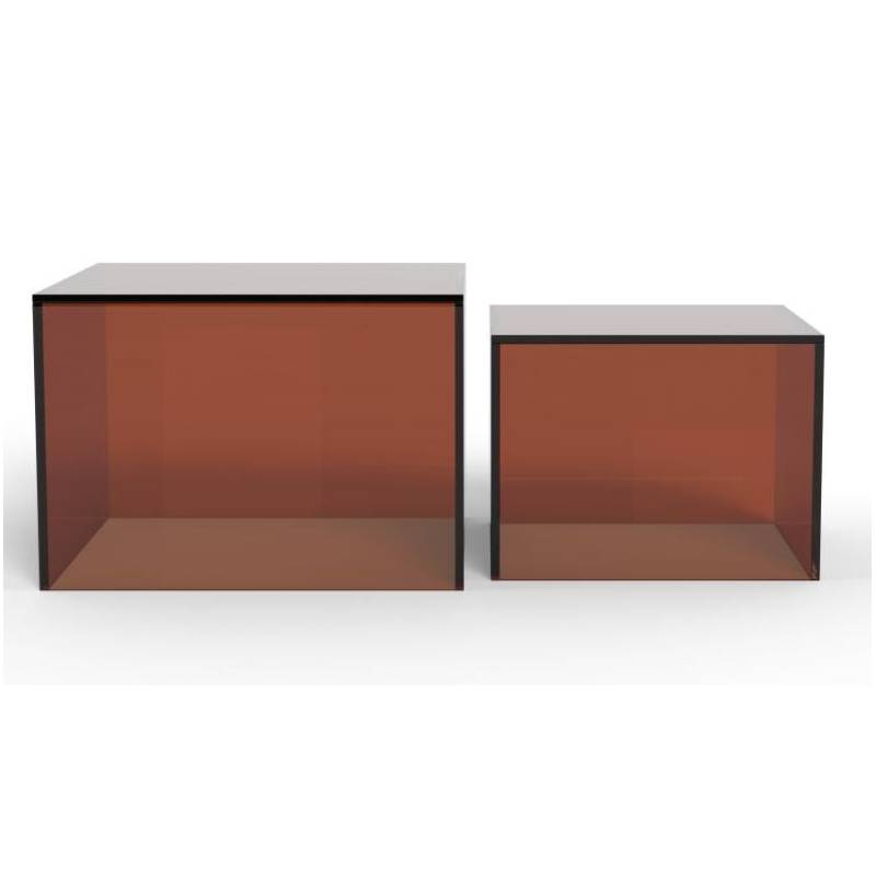 Kavos staliukų komplektas išsiskiria šiltu rudo stiklo atspalviu, kuris suteikia erdvei jaukumo ir subtilios elegancijos. Skaidrus, tačiau tonuotas paviršius leidžia išlaikyti lengvą ir neapkrautą interjero pojūtį, todėl staliukai puikiai dera tiek moderniuose, tiek šiltesnio stiliaus namuose.