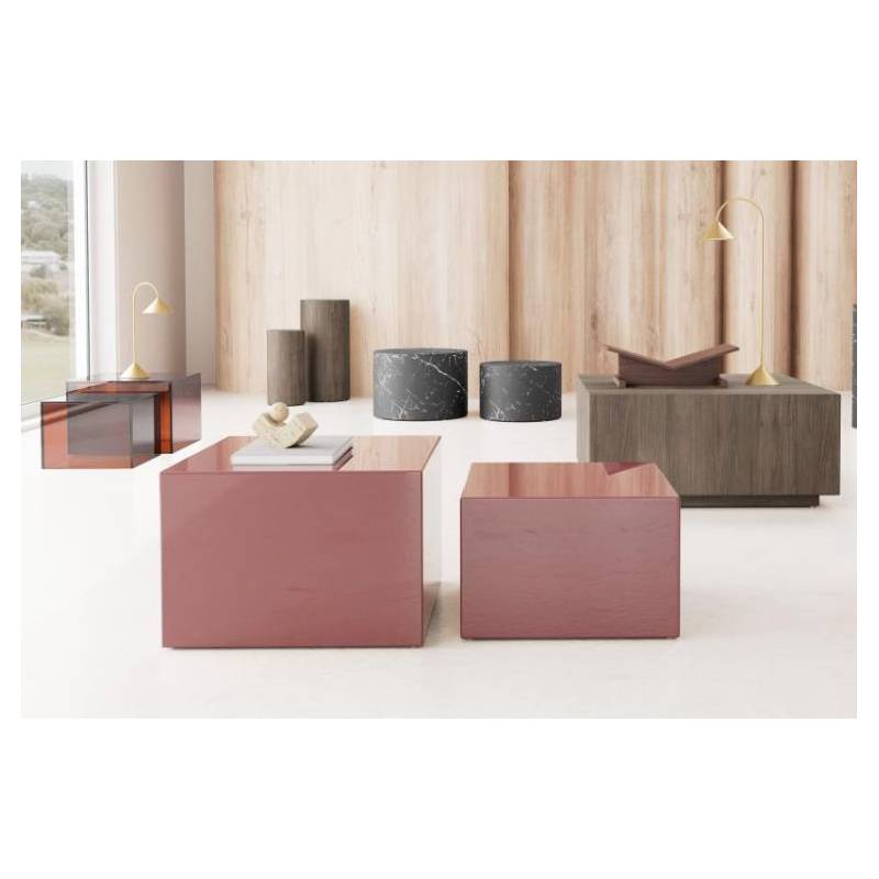 Komplektą sudaro du skirtingų dydžių kvadratiniai staliukai, kuriuos galima naudoti kartu arba atskirai. Toks sprendimas leidžia lengvai keisti jų išdėstymą pagal poreikius – nuo vientisos kompozicijos iki atskirų funkcinių zonų.