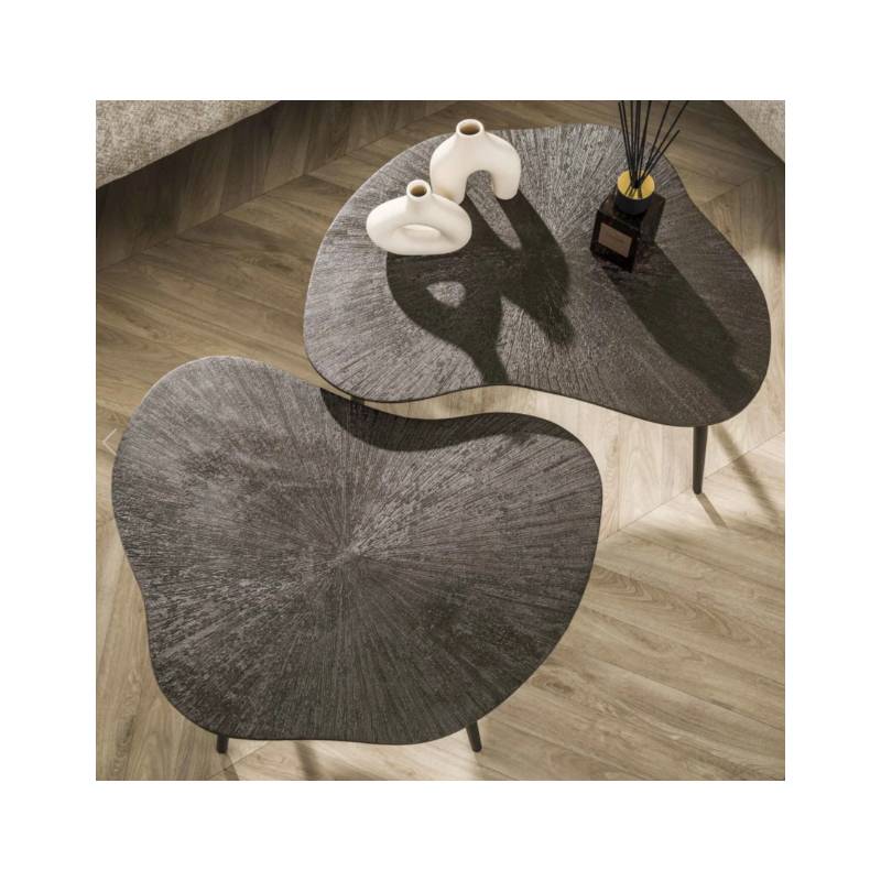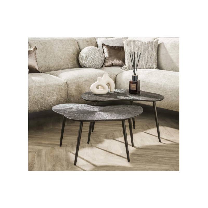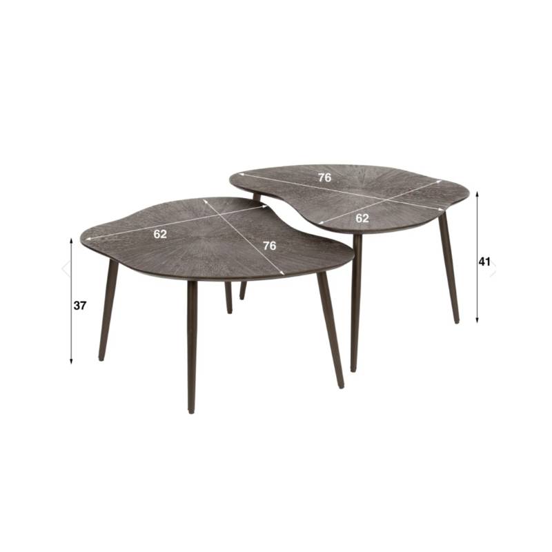 BROWNRAY kavos staliukų komplektas išsiskiria šiuolaikišku dizainu ir elegantišku rudos–bronzos atspalviu. MDF stalviršiai su nuožulniais kraštais suteikia baldui subtilios prabangos, o šiltas metalinis efektas kuria jaukią atmosferą svetainėje.