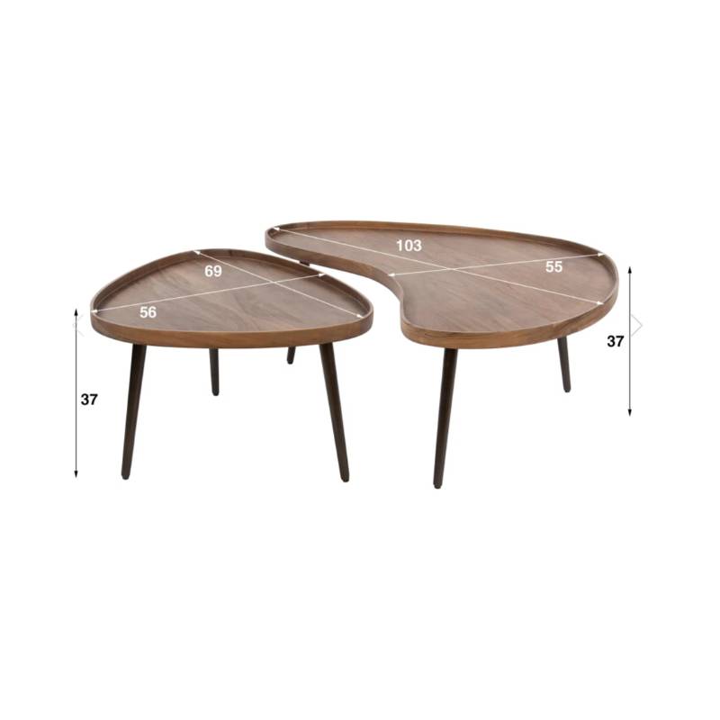Kavos staliukų komplektas CARVE 56x69/55x103 rudas (2vnt.)