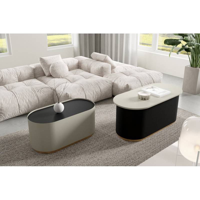 MALI – tai funkcionalus ir stilingas kavos staliukų komplektas, sudarytas iš dviejų ovalių staliukų skirtingo dydžio. Šis rinkinys pasižymi lengvu, moderniu dizainu, kuris puikiai tinka įvairaus dydžio svetainėms ar poilsio zonoms.