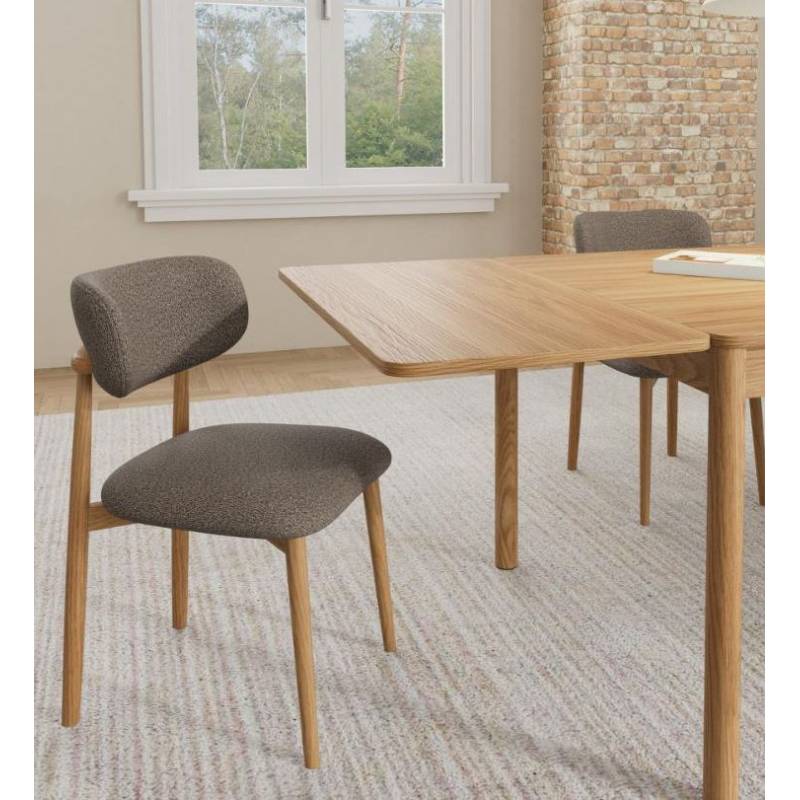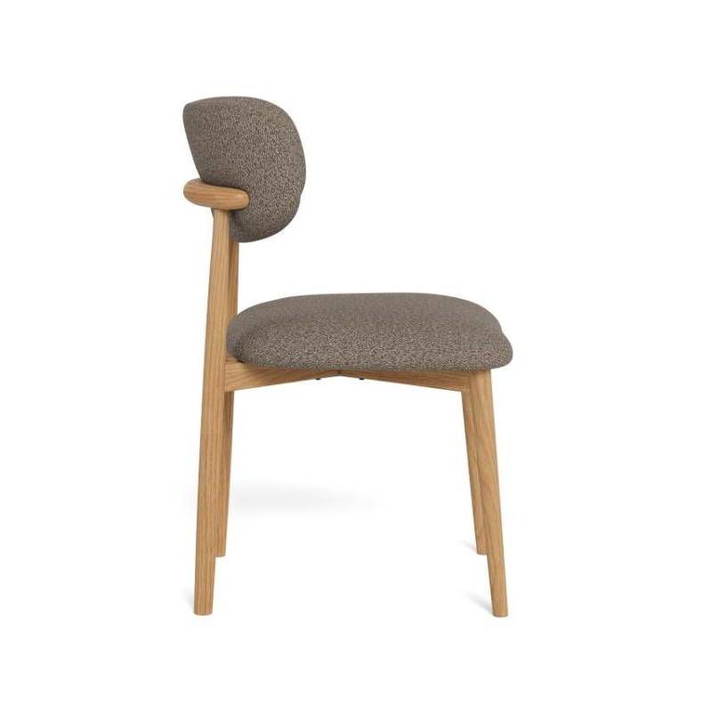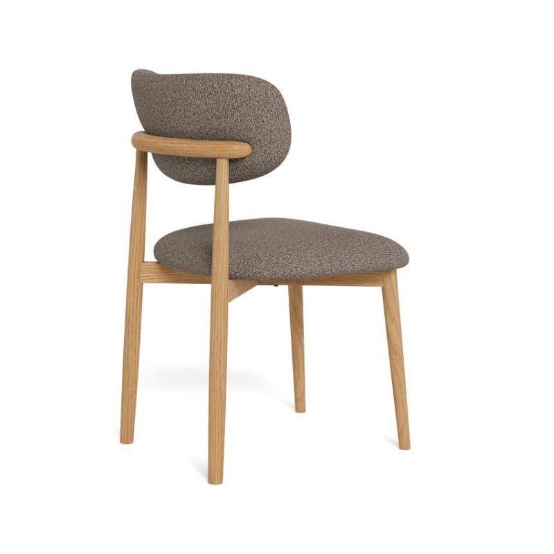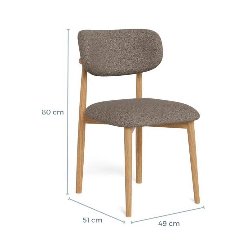 Ši valgomojo kėdė išsiskiria tvirtu, bet elegantišku dizainu ir organiškomis formomis, kurios suteikia interjerui jaukumo ir charakterio. Taupe spalvos bouclé audinys su subtilia tekstūra kuria šiltą ir estetišką vaizdą.