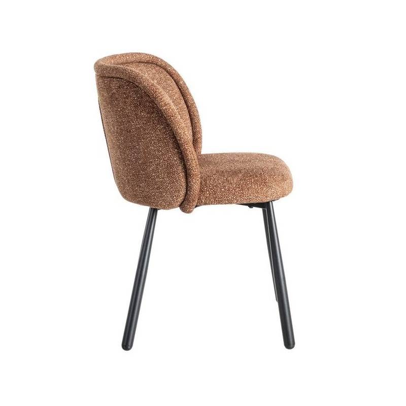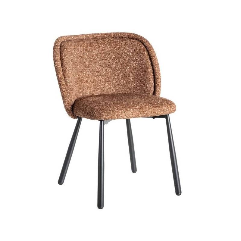 OCCRE – moderni valgomojo kėdė, išsiskirianti subtiliu marmuriniu raštu ir šilta okro spalva. 100 % poliesterio audinys yra malonus liesti, atsparus dėvėjimuisi ir lengvai prižiūrimas. Tvirtos juodo metalo kojos suteikia konstrukcijai stabilumo ir šiuolaikiškos estetikos, todėl kėdė puikiai dera tiek moderniuose, tiek skandinaviškuose interjeruose.