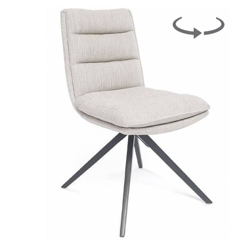 Valgomojo kėdė GIA su gobeleno apmušalu ir juodomis metalo kojomis, turinti 360° pasukimo funkciją – praktiška ir stilinga.