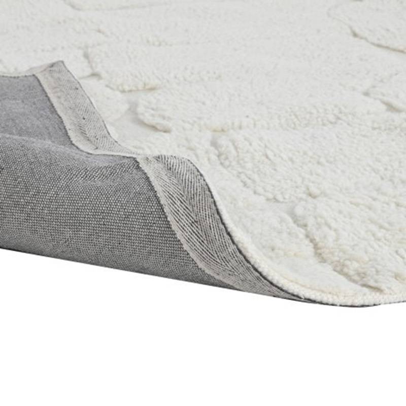 Baltos spalvos kilimas svetainėje ar miegamajame. Pagamintas iš vilnos ir medvilnės. Minkštas ir jaukus. Stačiakampio formos, su raštais. Raštai abstraktūs todėl lengvai derinsis įvairiuose interjeruose.