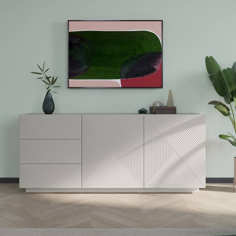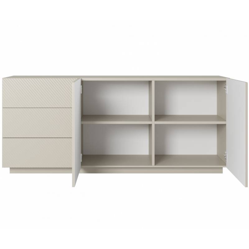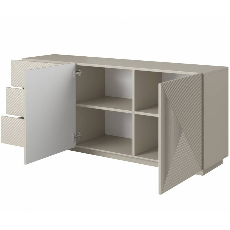 Komoda TASHA pasižymi stilingu dizainu, todėl papuoš įvairaus interjero namus. Tvirtos konstrukcijos, švelnios kašmyro spalvos, su stalčiais ir lentynomis.