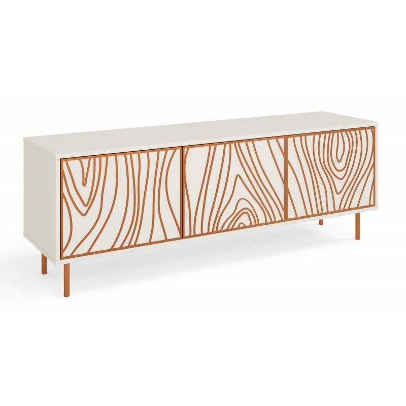 Svetainės baldų kolekcija TIRO – tai harmoningas metalo ir laminuotos medžio rašto plokštės derinys, jungiantis modernų dizainą su natūraliu jaukumu. Metalinės detalės, tokios kaip kojelės ar rankenėlės, suteikia baldams subtilaus industrinio charakterio, o paviršiai, atkuriantys natūralius medžio sėklo raštus, įneša šilumos ir autentiškumo.