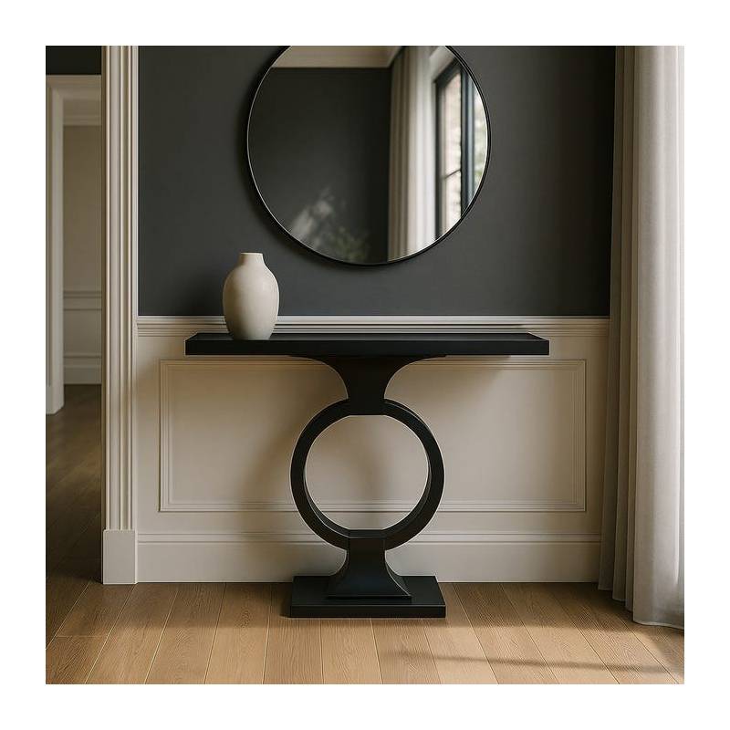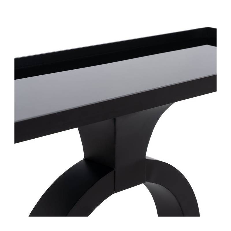 Ši konsolė – modernus ir rafinuotas pasirinkimas, kuriam nebūdingas iššaukiantis dizainas, tačiau jis puikiai įsilieja į šiuolaikinius interjerus. Patikimas juodo metalo rėmas suteikia tvirtumo ir stabilumo, o stiklinis stalviršis tuo pačiu metu atrodo lengvas ir elegantiškas. Tai minimalistinis baldas, kuris ne tik papildo erdvę funkcionaliai, bet ir suteikia jai švarios, miesto estetikos jausmą.