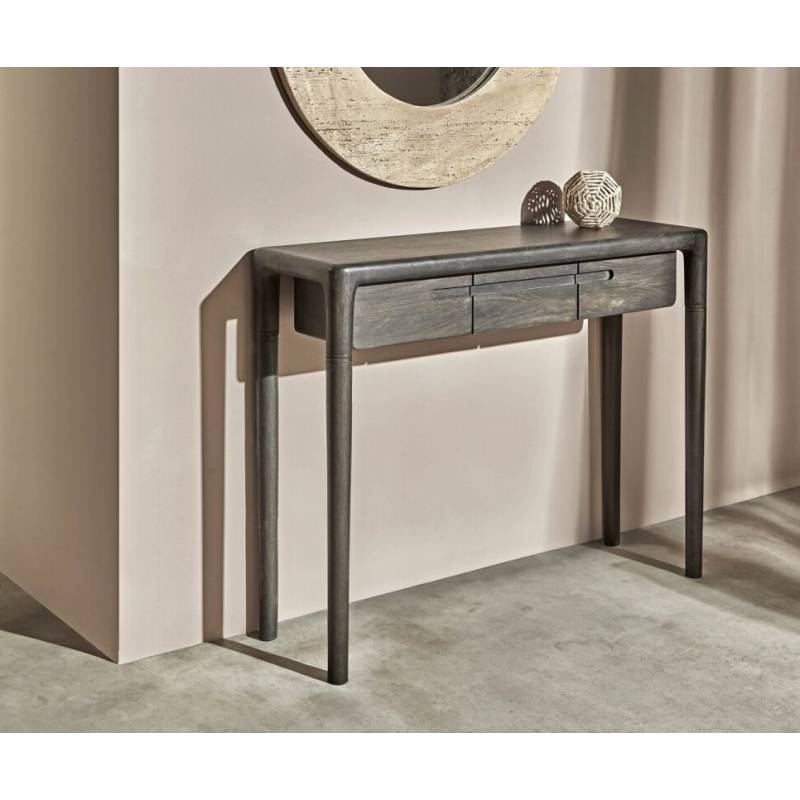 Konsolė JERONI iš natūralaus mango medžio – elegantiška, kompaktiška ir stilinga. Puikiai tinka prieškambariui ar svetainei.