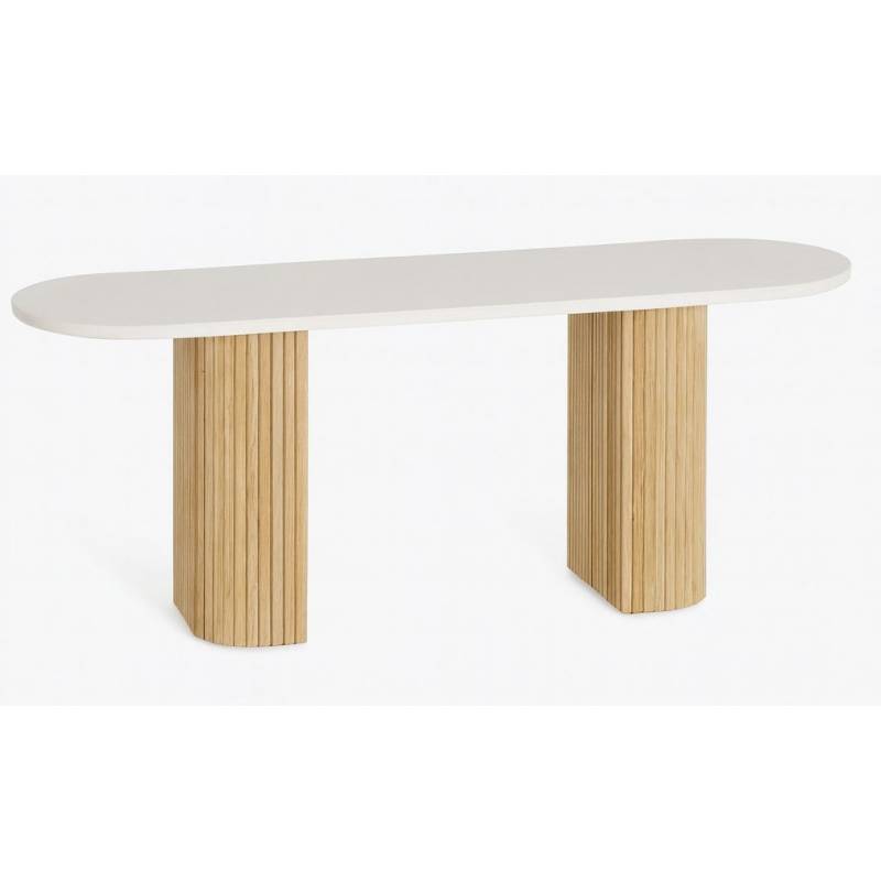 Konsolė TEMPO – elegantiškas ir šviesus akcentas namuose. Su rudomis medinėmis kojomis ir šviesiu stalviršiu puikiai dera su stalu TEMPO.