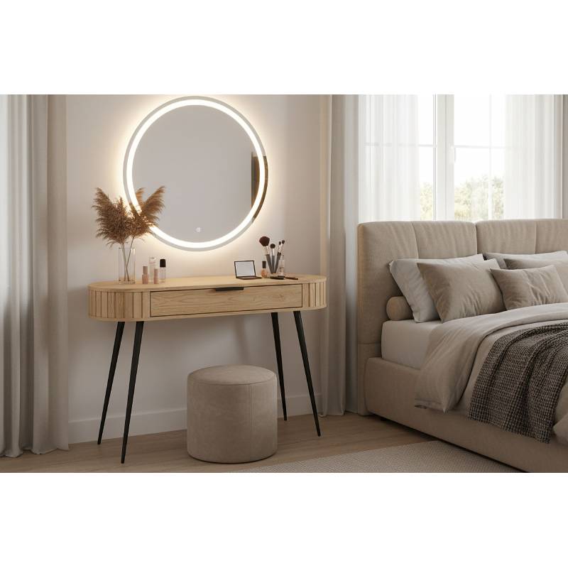 VULIO konsolė – tai modernus ir išskirtinio dizaino baldas, pasižymintis frezuotais fasadais ir švelniai užapvalintomis šoninėmis linijomis. Medžio spalva suteikia natūralumo ir šilumos, o juodos metalinės kojos kuria subtilų kontrastą ir modernų charakterį.