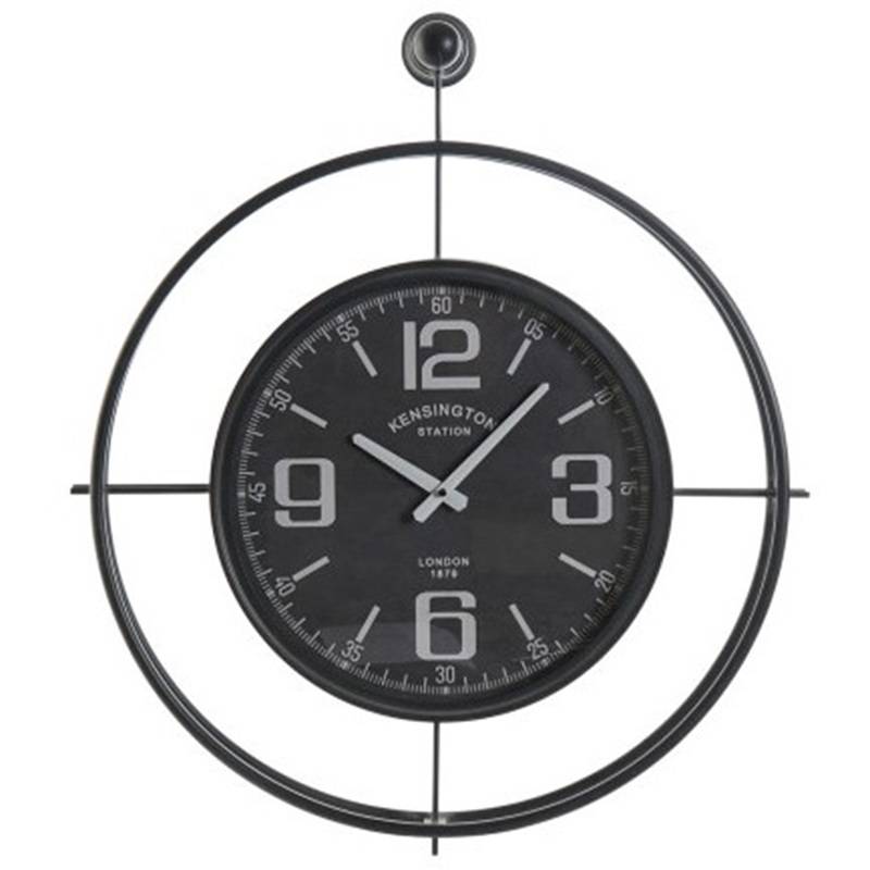 Modernaus dizaino, apvalus, taikinio formos laikrodis IRON, juodos spalvos. Puikiai tiks šiuolaikiškame, industriniame interjere.
