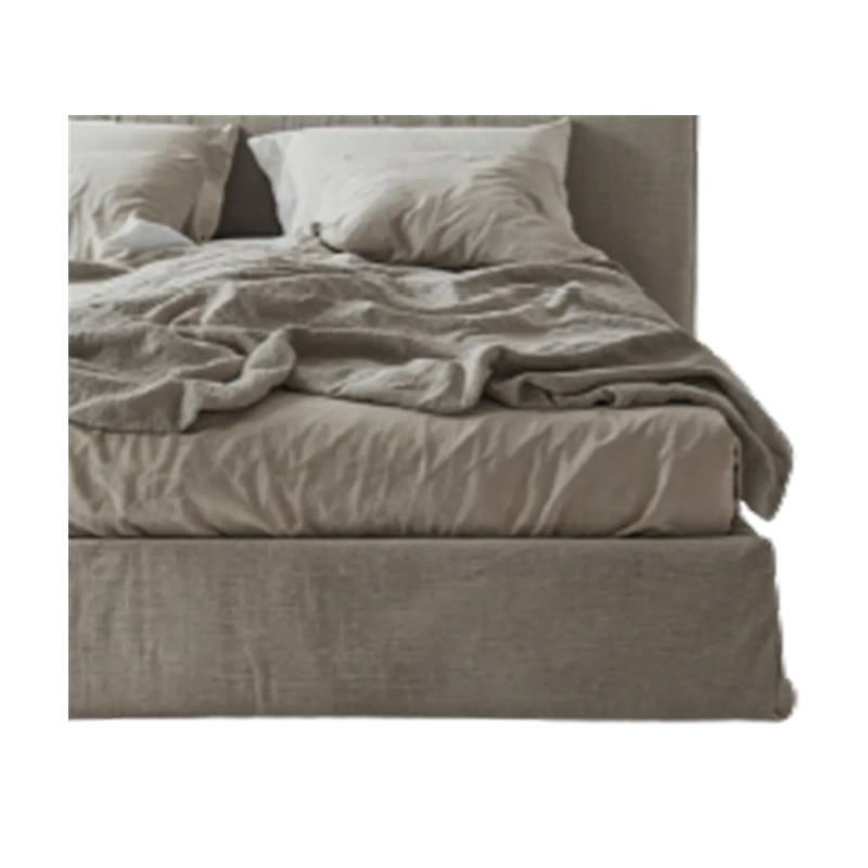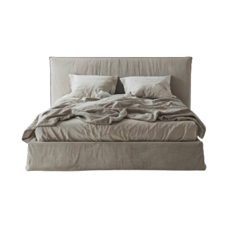 Moderni lova su lino faktūros užvalkalu, patalynės dėklu ir pakeliamu rėmu – jaukumas, elegancija ir praktiškumas viename.