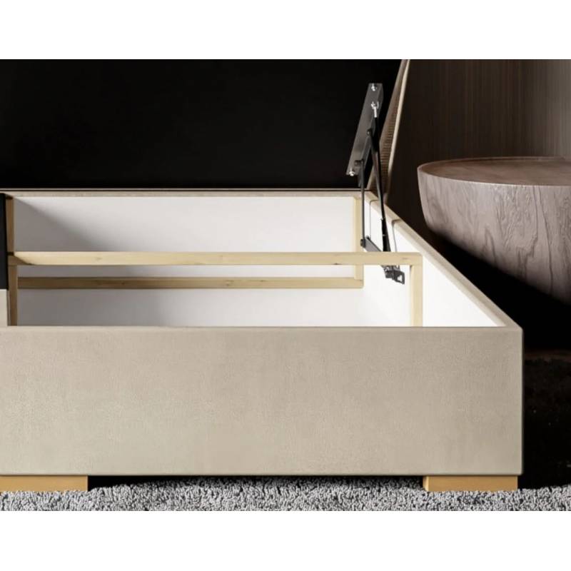 Lova turi du erdvius patalynės dėklus, atsidarančius iš priekio – tai patogus sprendimas patalynės, sezoninių drabužių ar kitų daiktų laikymui. Ekranuose naudojama neslystanti medžiaga užtikrina stabilumą, o 5 cm aukščio medinės kojelės suteikia lengvumo ir palengvina grindų priežiūrą po lova.