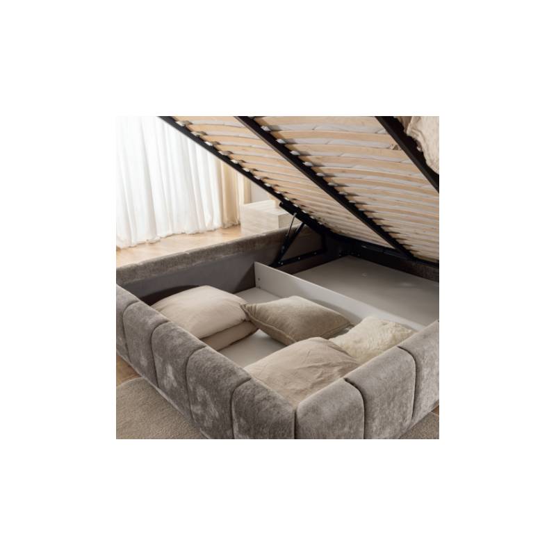 Lova turi dvi patalynės dėžes, todėl suteikia daug vietos daiktų laikymui. Galimi trys pločiai – 140 cm, 160 cm ir 180 cm čiužiniams, o kaina paskaičiuota su 180 cm čiužinio variantu, leidžiant pasirinkti tinkamiausią dydį pagal poreikius.
