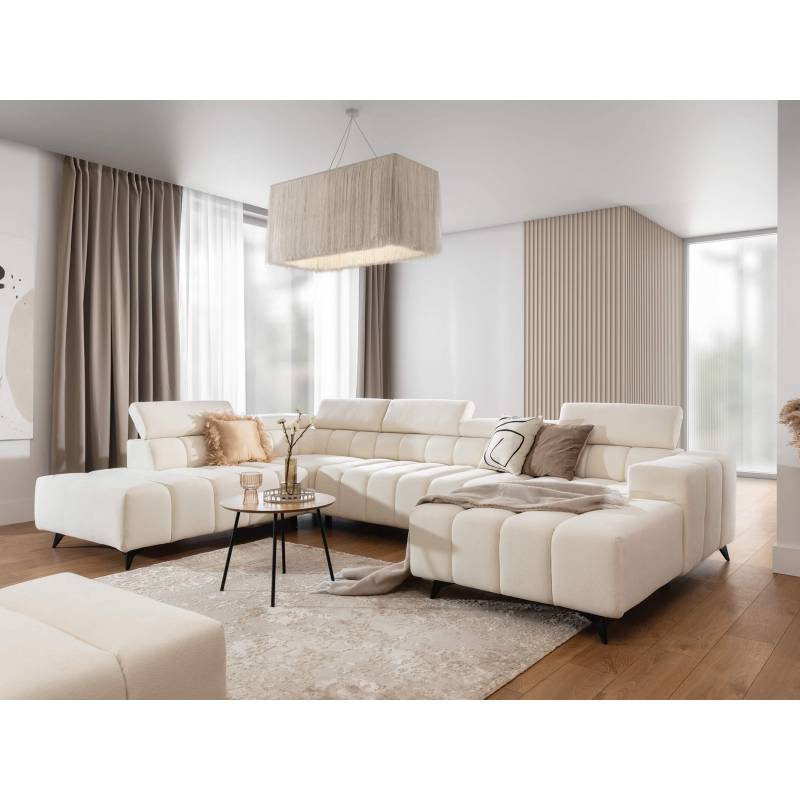 Didelis U formos minkštas kampas RAGUSSO su dviem patalynės dėžėmis ir miegama funkcija – komfortas, stilius ir funkcionalumas viename.